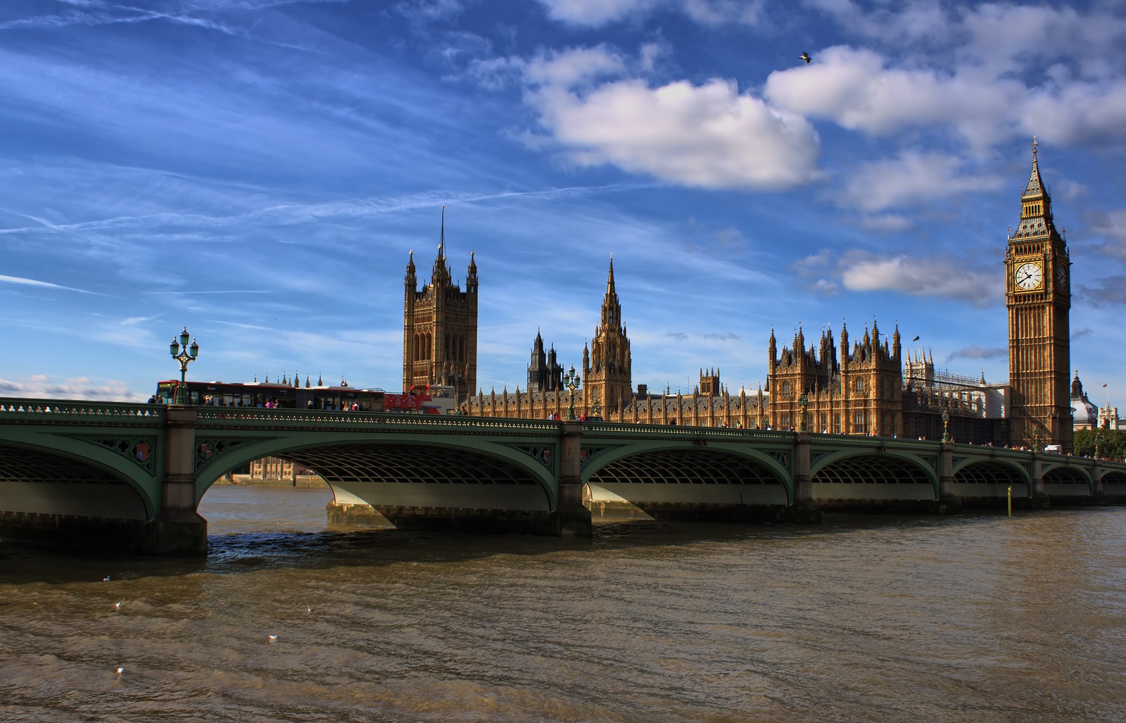 The Big Ben,the Houses of Parliament and Westminster bridge in L